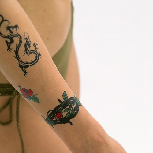 TATTOO(タトゥー)シールで、グッと色っぽく!いつものコスプレ衣装に合わせて、こだわりの箇所に貼り付けるだけ!特殊な素材を使用しているので、皮膚の動きと一緒に伸び縮みします。入浴したり、海やプールに入っても2、3日は取れません!あなたならどこに貼る?SM女王様風に胸元?ほのかにセクシーな首筋?クールに決まる腕?小悪魔ちっくな足首?パーティーに、お祭りに、イベントに、大活躍!あなたの個性で選んでね!