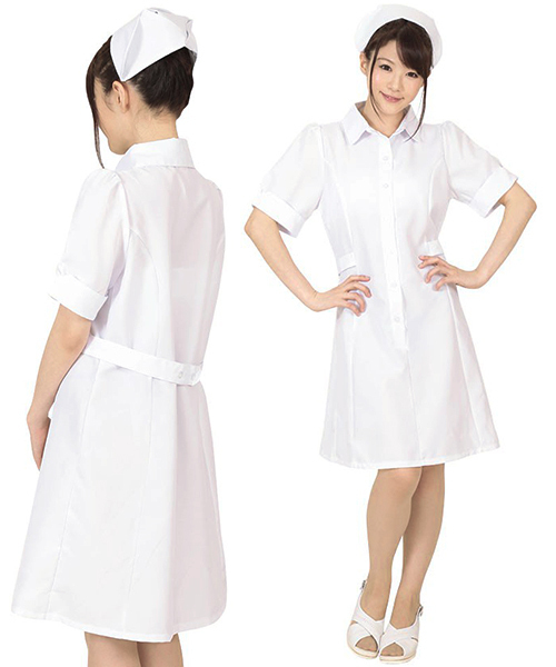 丸い襟と今風のパフスリーブがかわいい!本物のナース気分が味わえちゃうリアルなコスプレ衣装です!キュッと引き締まったウエストラインがセクシー。癒し度満載の真っ白なナースワンピースです!※ストッキングは付属しません