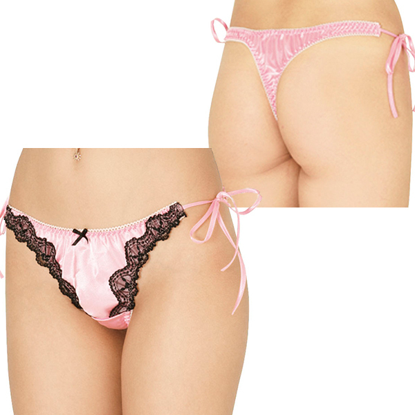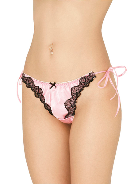 女の子らしいピンクをベースとして、フロントのVゾーンを華やかにするブラックレースが存在感のあるショーツです。キュートなフロントの黒リボンや、セクシーなサイドの紐にも注目して欲しいセクシーな下着です。