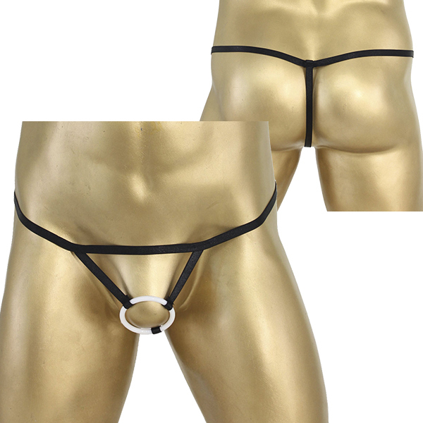 <EROX>男性器をリングに通すという、斬新なデザインが特徴の超セクシーなメンズランジェリー。フロントに視線は集中しがちですが、後ろ姿でも極細のGストリング仕様で見事に男らしさをアピール!こちらのカラーはシックなブラック。
