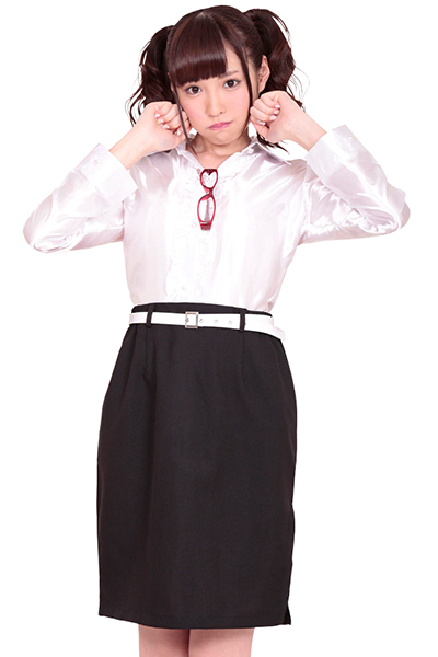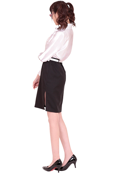 憧れの美人教師に変身!ブラックのスカートに入ったスリットから覗く生足が、セクシーなコスチューム。白ベルトがポイントマークになって脚長効果も。光沢感のあるシャツはフロントにフリルをあしらう事で、クールすぎない大人の魅力をアピール!