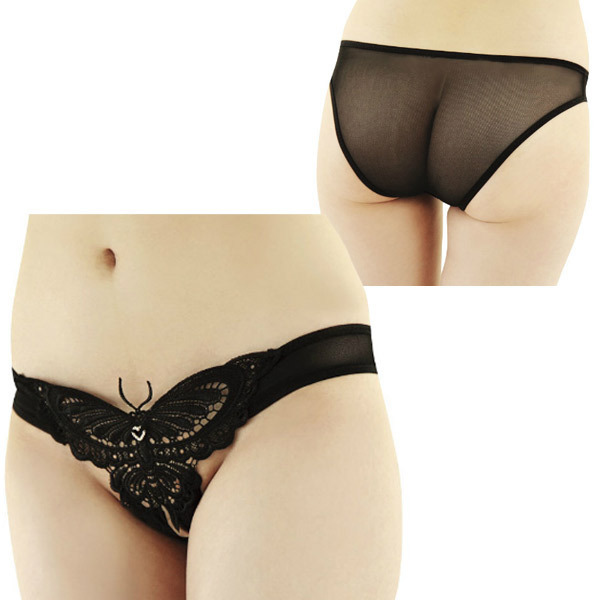<EROX>大きく広げた黒蝶の羽がゴージャスな、セクシーオープンショーツ。優雅に舞うバタフライデザインが魅力的!クロッチ部分は、大胆なオープンタイプ!バックスタイルは、安心のフルバック仕様。素敵な夜を演出するセクシー下着です。