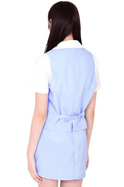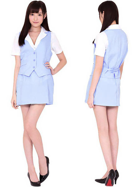 コスプレの枠を超えた本格的なOLコスチュームが登場。前面は3つボタンのスタンダード型OL制服で、白のブラウスにブルーのスカートの組み合わせが爽やかさ満点!セクシーなサイドスリットデザインも見逃せない!