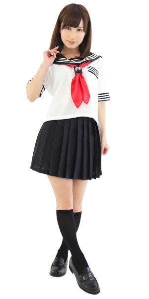 赤いスカーフがポイント!人気の定番セーラー服コスプレ(LL)。涼しげな夏服仕様の半袖タイプ!セーラー襟や袖のオーソドックスな3本ラインでリアル感も演出!ミニ丈のプリーツスカートがちょっぴりセクシーなスクール系コスチュームです。