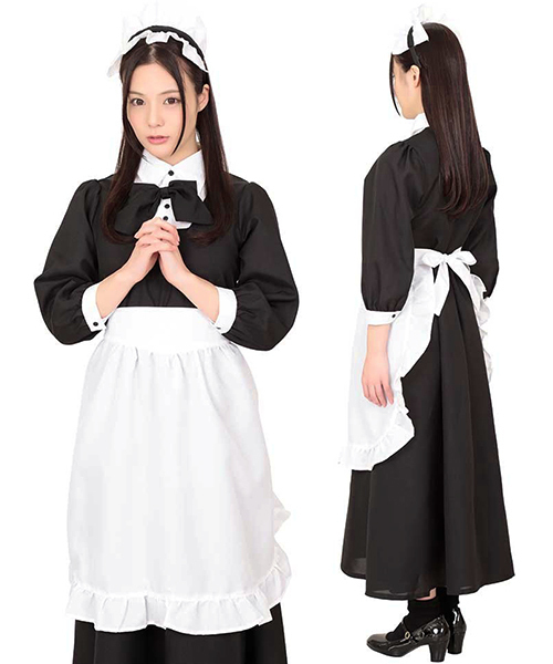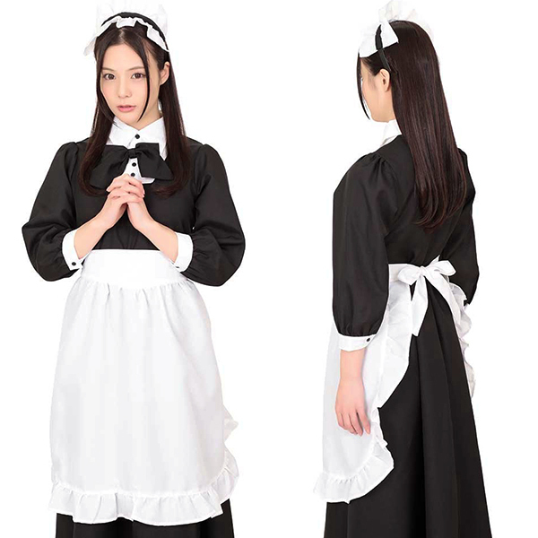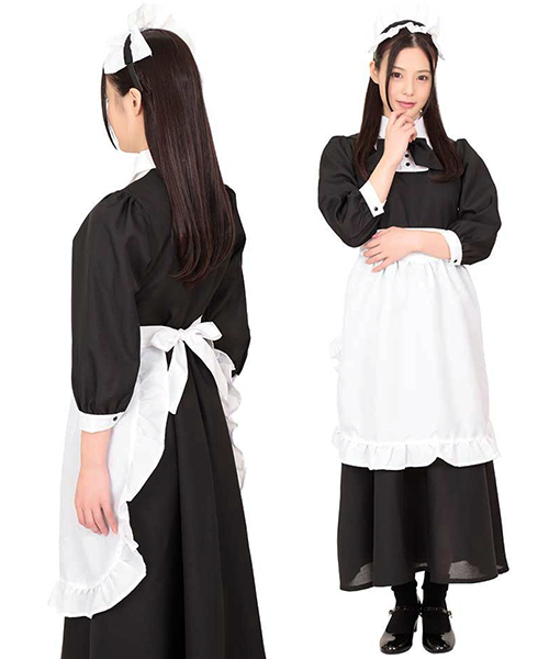 上品なメイドさんを目指すならコレ!絶妙バランスの黒×白カラーで仕上げた、クラシカルなロングワンピのメイド服コスプレ。落ち着いたロング丈のワンピースに合わせて、エプロンも少し長めの作りになっています。セットのフリルカチューシャをつければ、ハイソなメイドさんの出来上がり!