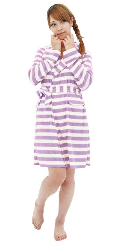 癒し効果抜群!パープルカラーのキュートなボーダー柄のガウン。パイル生地を使用しているので肌触りが良く、着心地も抜群!疲れが溜まったカラダを優しく包み込み、リラックスさせてくれます。ゆったりとした時間を過ごしたい日に最適なアイテムです。