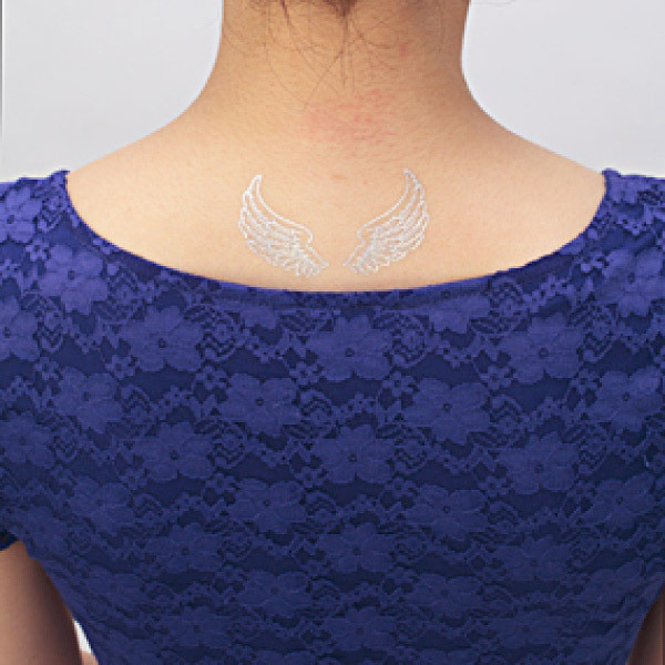 オシャレの仕上げにも、お祭りやイベントにもと使い勝手バツグン!天使の羽根デザインのミニサイズタトゥーシール。彫師デザインによる銀色に輝く天使の羽根は、今にも羽ばたきそうなリアル感。水辺でのレジャーや入浴にも強く、3日ほど持続します。皮膚の動きと合わせて伸び縮みするので、よれたり崩れたりの心配もいりません。落とす際は専用のリムーバーやクレンジングクリームなどを使用してください。