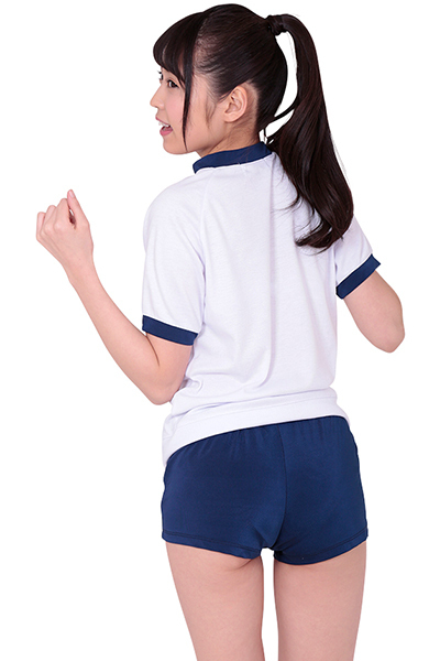 今時のリアルな体操服と言えばコレ!半袖Tシャツ&短パンの体操服コスプレセット。むっちりブルマの代わりとして普及してきた、ライン入りの紺色短パンタイプ。胸元のくまさんがとってもキュートな体操服コスチュームです。