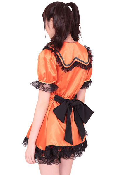 オレンジ×ブラックのパンプキン色がとっても可愛い、かぼちゃのお姫様コスチューム。●トップス・パンツ・リボンの3点セット●着脱しやすいセパレートタイプ●全体を縁取るようにあしらった黒レースが女の子らしさをUP●黒の縦じま入りのふっくら可愛いかぼちゃパンツ●キュートに決まる黒リボン。ハロウィンパーティーに打ってつけのコスプレ衣装です。