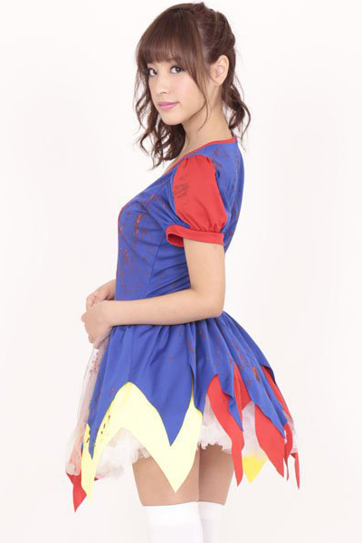 あのヒロインがホラーテイストに…!ビビッドカラーの血のり付きコスチューム。●赤×青×黄色のビビッドカラー●ギザギザ裾加工のミニ丈ワンピ●血しぶきのようなペイント付き●ハロウィンに最適なゾンビ風。真っ赤なリンゴを食べたらゾンビになっちゃった?おとぎの国のプリンセスにホラー要素を取り入れた、ユニークなハロウィン用コスチュームです。※こちらの商品は受注発注商品の為、ご注文から発送まで2〜3営業日掛かる場合が御座います。
