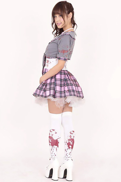 思わずキャーッと叫んじゃう、こわ〜いゾンビ風セーラー服コスチューム。●グレー×ホワイト×ピンクチェック●ワンピース・ボレロ・ネクタイのお得なセット●ボリュームたっぷりのパニエ付きスカート●血痕プリントがリアリティ満載。この姿を見た瞬間、誰もが絶叫!仮装パーティーやイベントにオススメのホラーコスプレ衣装です。※こちらの商品は受注発注商品の為、ご注文から発送まで2〜3営業日掛かる場合が御座います。
