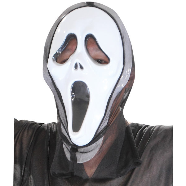 黒いフードに白い顔…!戦慄のデスボイスが聞こえそうなスクリーム風フェイスマスク単品。●装着するだけでコスプレ完了・フリーサイズのお面●大口を開けて歪んだ顔が意外と面白い●性別や年齢関係なし・手持ちの黒い衣装に似合います。ハロウィンイベントのホラー仮装に!カッコよく斜めに被ったり、仲間と揃えたりしても楽しめるコスプレ小物です。※こちらの商品は受注発注商品の為、ご注文から発送まで2〜3営業日掛かる場合が御座います。