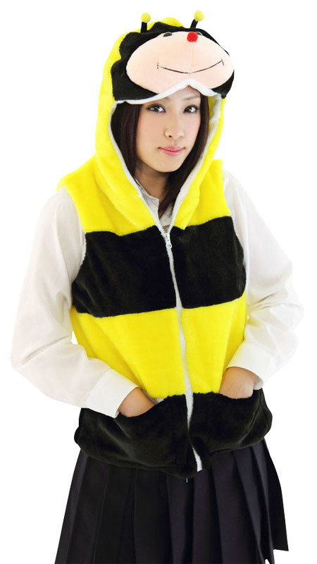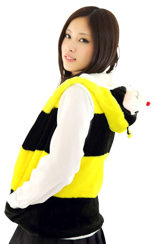 もこもこ素材であったか♪みつばちカラーの着ぐるみベスト。●大人用フリーサイズ●黄×黒のしましまデザイン●肌触りの良いふわふわ素材●フロントファスナーで開閉可●赤鼻がキュートなみつばちのフード●左右ポケット付き。ハロウィン等の仮装用からお部屋着用まで、幅広くお使い頂ける着ぐるみコスチュームです。※親子でお揃いコスプレができる子供用サイズ(b23318)も御座います※こちらの商品は受注発注商品の為、ご注文から発送まで2〜3営業日掛かる場合が御座います。