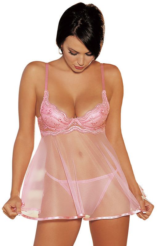 パステルピンクが可愛い!ほんのり甘さをプラスしたガーリーベビードール。●お尻をギリギリ隠す短めの丈●身頃はセクシーなシースルー●胸元に波型スカラップレース●シースルー製Gストリング付き。バストを華やかに飾るスカラップレースがゴージャス!圧迫感がないのでナイティとしても着られそう。可愛さとセクシーをコラボさせた大人ランジェリーです。※Sサイズ(b23468)、Lサイズ(b23470)もございます。