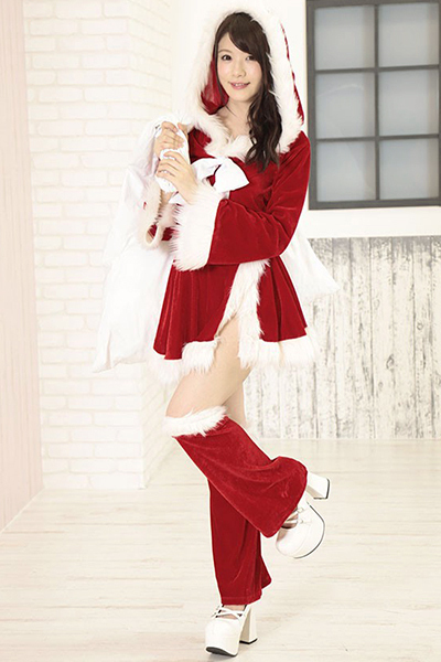 ふんわりファーで雪化粧♪フーディートップス&スカートのラブリーサンタのコスプレセット。●短め丈のセクシートップス●フェイクファーで縁取ったフード付き●大きめのフロントリボンがポイントに●巻きスカートにもファー付き●レッグウォーマーで脚元も可愛く●黒ベルトでウエストマーク。カジュアル&ガーリーなフード付きトップスをヘソ出しのミニ丈にしてセクシーさもプラス!フードを被ってふわふわファーに包まれれば小顔効果もバッチリです。