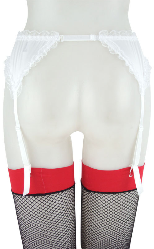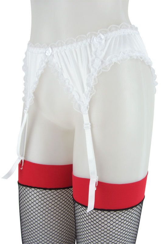 セクシーなガーターベルトもホワイトカラーならキュートに♪光沢素材とフリルレースのガーターベルト。●清楚な印象の純白カラー●エレガントな光沢素材●縁取りはラブリーなスカラップレース●腰回りはアジャスター調整可能。ツヤ感のある純白のグロス素材が特別感を高めてくれるガーターベルト!ガーターストッキングだけでなく、ニーハイソックスとも相性抜群です。※ストッキングは付属しません