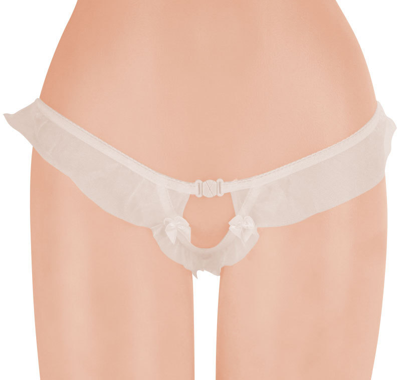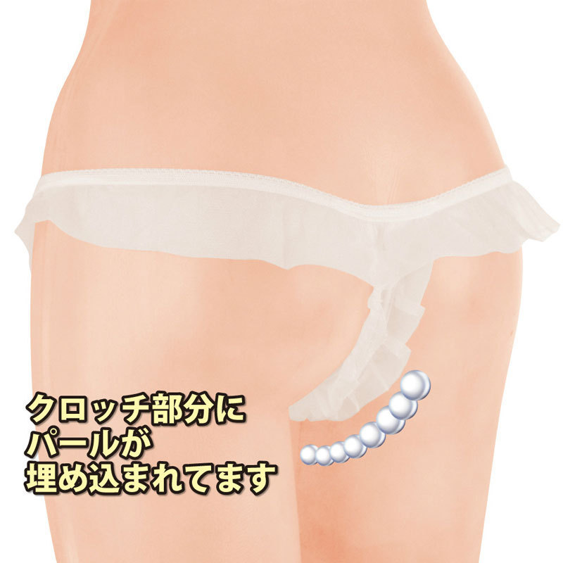 たっぷりフリルが可愛い!大人なギミックが隠されたセクシーショーツ。●天使の羽のような柔らかホワイト●ウエスト周りに幅広フリルをプラス●リボン付きフロントはオープン仕様●フリルによるTバックデザイン●クロッチに大粒パール内蔵済み。ただのオープンショーツと思ったら大間違い!見た目だけでなく着心地までセクシーな大人ランジェリー。リボン+フリル+パールのロマンチックなデザインです。