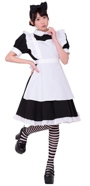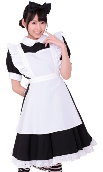 シンプルさが人気の秘密!可愛さを存分に引き出してくれるメイドさんコスチューム。●定番人気のモノトーンメイド●おしとやかな膝丈ワンピース●丸襟&ふんわりパフスリーブ●フリルレース付きスカート裾●清潔感のあるフリルエプロン●リボンカチューシャもセット。膝丈×クラシカルデザインで上品さが一層際立つメイドワンピース!ミニ丈やカラフルなメイド服とは別に、一着は押さえておきたい大定番コスチュームです。