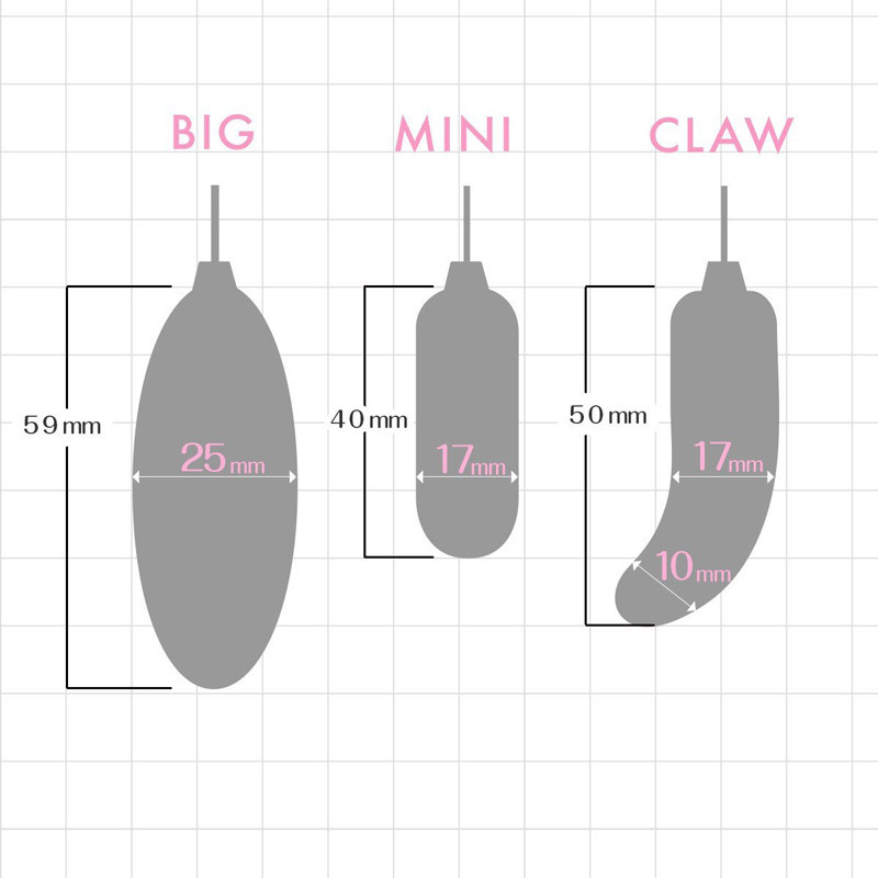 パッケージ:14.0×10.0×4.0cm 本体:ローター6.0×2.5cm リモコン8.6×2.8cm 電池:単四電池×2本使用