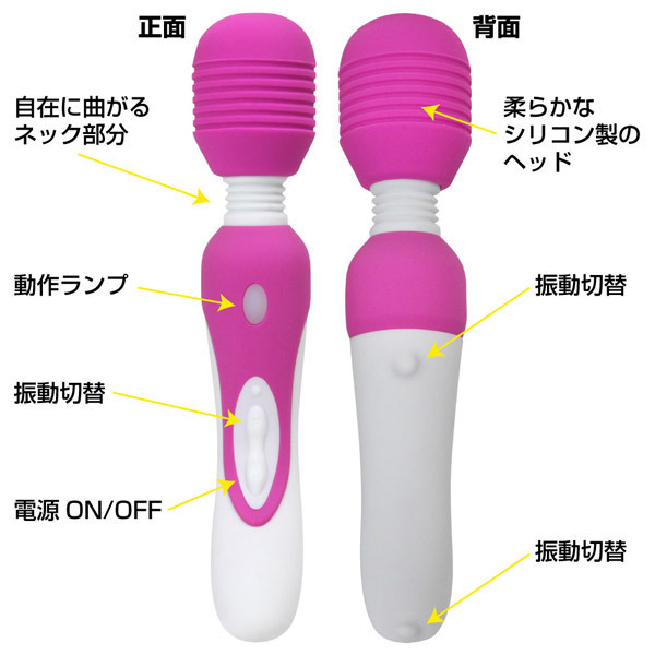 人気シリーズに優等生登場!うっかりさんも安心の充電式電マ。●ポップで可愛い「シルフィー」電マ●J字にカーブしたユニークな持ち手●充電しながらでも使える交流タイプ●USB充電2h(フル)で2h連続使用可能●ノンストレスなフレキシブルネック●安心して使える生活防水・静音設計●強弱3段階&3種リズムの6パターン●パターン切替ボタンは正面・裏面上・底部の3か所に配置。充電し忘れた…そんなピンチの時でも充電しながら使えて超便利!さらに切り替えボタンを多数配置することで、セルフプレイもカップルプレイ時にも押しやすいユーザー思いのハイクオリティ電マ。シーンや体勢も気にせずに使える優秀アイテムです。