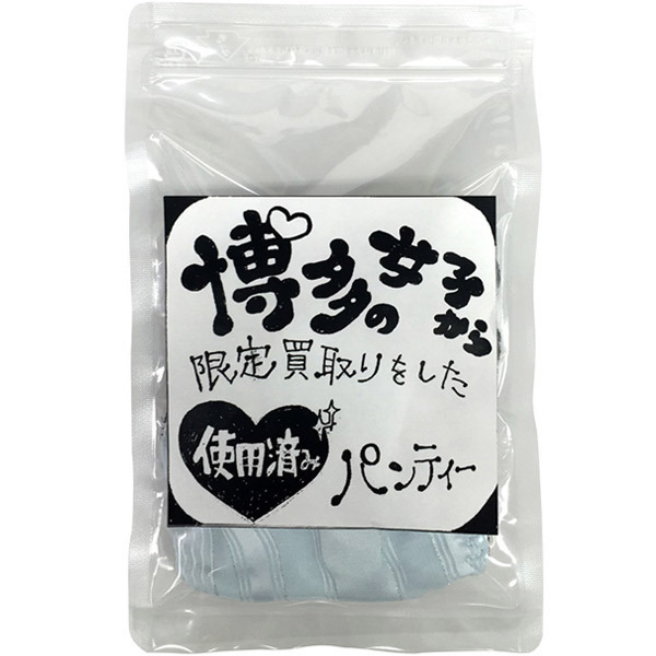 夢と妄想が膨らむ限定お宝ランジェリー!博多っ娘から買い取りしたお宝パンティー。●フェチ心くすぐる一般女性の下着●レアなパンティー1枚を封入●チャックパウチでしっかり密封。嗅いで擦って…五感で感じる至福の妄想オナニー!フェティッシュながら、エアダッチ用のオプショングッズとしても使える万能アイテムです。※アソートとなりますので、色・柄・種類のご指定はできません※USED加工を施した新品未使用品です