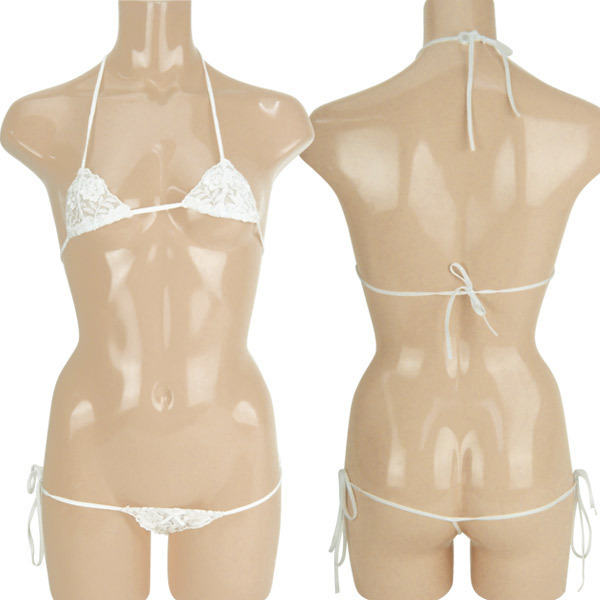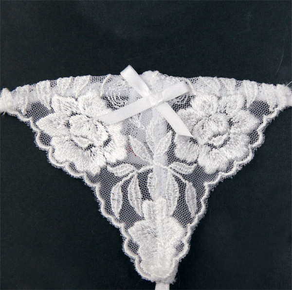 美しい花柄刺繍を施したチュールレースブラ&ショーツのセット。●ピュアなホワイトカラー●隠す部分が少ない極小生地のマイクロミニブラ●見えそうで見えないGストリングショーツ(ローライズ)●結んで解ける紐仕様●日本製。過激なデザインが彼の視線を釘づけにするランジェリーです。