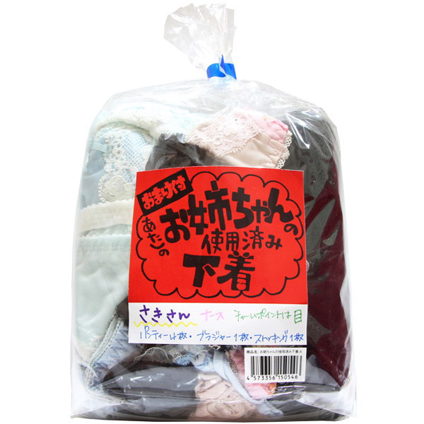 姉属性持ちの貴方へ贈るお宝ランジェリー!使用済み下着の詰め合わせセット。●色々楽しめるパンティ4枚●1点物のブラジャー1枚●ムレムレのストッキング1足●色柄ランダムのアソート品。姉が使用した下着類を袋にぎゅぎゅっと詰め合わせ!イケない妄想オナニーが捗るスペシャルランジェリーセットです。※アソートとなりますので、色・柄・種類のご指定はできません※USED加工を施した新品未使用品です