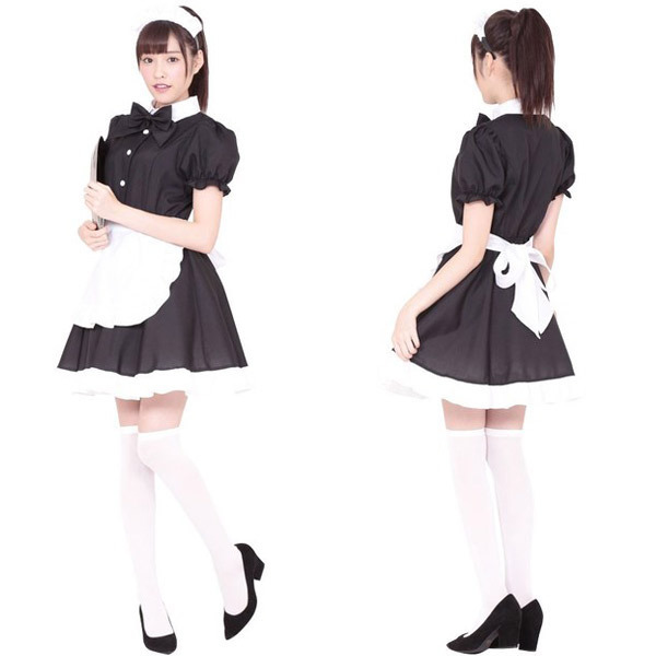 ご主人様おかえりなさいませ♪メイド気分を満喫できる可愛さ満点のメイド服コスプレ。●シンプルな黒×白カラー●フリルが可愛いパフ袖の黒ワンピース●大きな結びリボンがとってもキュートな白エプロン●メイドには欠かせないフリルカチューシャ●さり気なくオシャレな大きめ黒リボン●女性用Mサイズ。宴会などの催し物はもちろん、デートの日に彼の専属メイドに変身してみるのも♪シンプルだけどキュートなメイド服コスチュームです。※セット内容以外は付属しておりません。