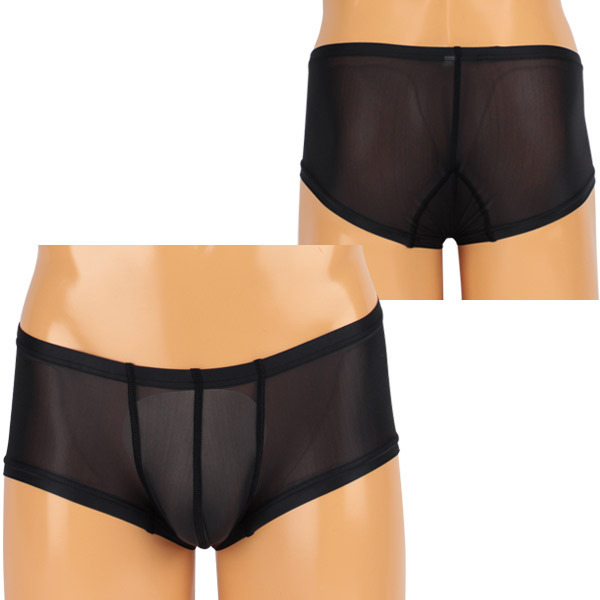 程よい透け感が大人のセクシーさをアピール!シュッとスタイリッシュに決まるローライズボクサーパンツ。●エロかっこよく決まるブラックカラー●極薄ストレッチ生地を使用●ボクサータイプ●フロントはゆったりめのデザインで締め付けすぎないのがポイント●メンズ用Mサイズ。普段履きから勝負の日までオールマイティに使えるメンズランジェリーです。