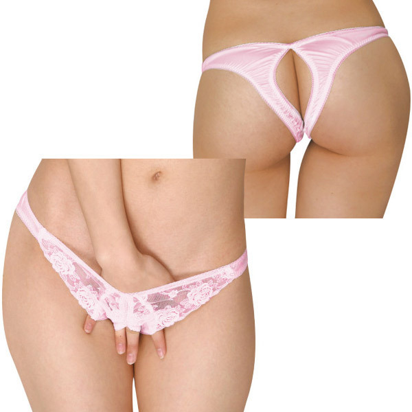 中央でざっくりカット♪セクシー仕上げのヒップオープンショーツ。●ハーフバックデザインショーツ●ピンクレース×光沢フェリカ地●前から後ろまでオープンカット。透け感が悩ましいエレガントレースと、ヒップのカットデザインで大胆に魅せるオープンランジェリーです。