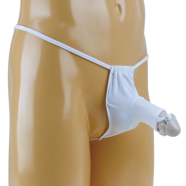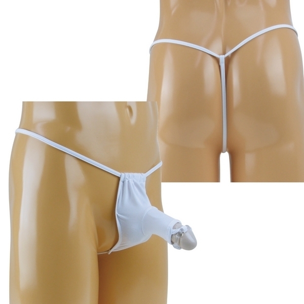 誇らしく主張する斬新デザインでより逞しく♪フロントの幅を自由に調節できるふんどしデザインの男性用オープンショーツ。●すっきりとしたホワイトカラー●幅を自由に調節できるふんどし風●体にフィットするストレッチ生地●筒状のエレファント型ポケット●先端に透明のパワーリング付き●Tバックのストリング仕上げ●メンズ用Mサイズ・日本製。開放的なセクシーデザインで隠さずに強調!穴の先にイボ付きのパワーリングも装着されたメンズショーツ。フロント上部はふんどしのように寄せたり広げたり、自在に調節できるユニークデザイン!伸縮性のあるストレッチ素材でフィット感も抜群です。