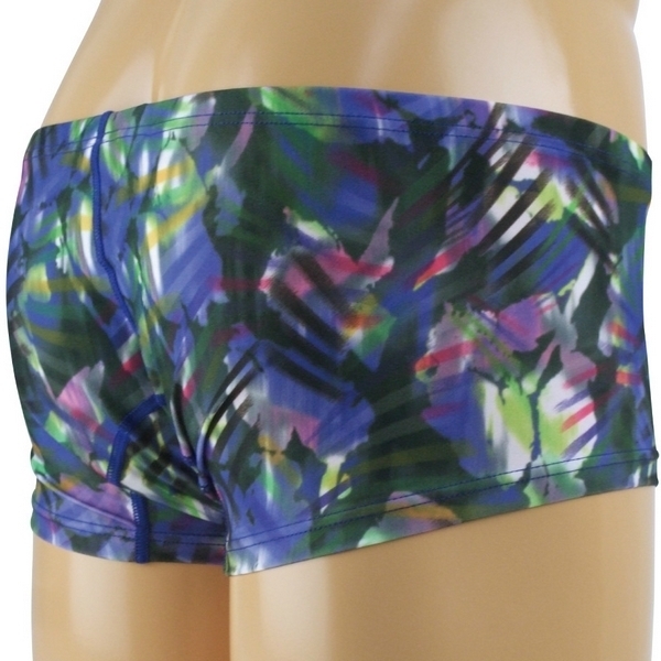 インパクト大のジオメトリック柄でお洒落レベルUP♪幾何学模様がプリントされたメンズボクサーパンツ。●ローライズのボクサーパンツ●ジオメトリック柄を全面プリント●ストレッチ生地で身体にフィット●立体的な縫製のゆったりフロント●メンズ用Mサイズ・日本製。個性的な幾何学模様で差をつけるメンズランジェリー!フロントはゆったりとした立体的な縫製です。