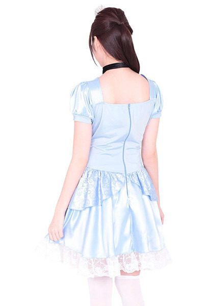 女の子の永遠の憧れ!お姫様気分を味わえるキュートなミニ丈プリンセスドレス。清楚な印象の水色ドレスワンピースに、装いをワンランクアップさせてくれるティアラと黒チョーカーもセット!裾のレース使いなどエレガントな大人可愛い魅力を引き出せるこだわり仕上げのコスプレ衣装です。※セット内容以外は付属しておりません。