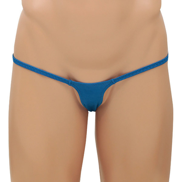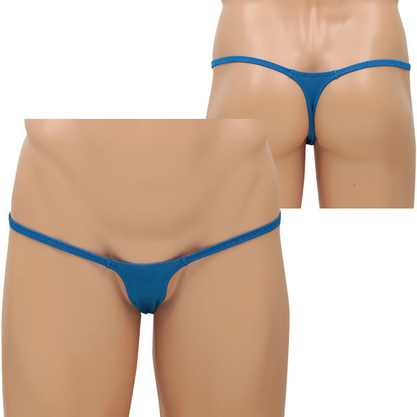 <EROX>シンプルスタイルでセクシーに魅せる大人のメンズランジェリーシリーズ!ブルーカラーのマイクロTバックショーツ「バレット」。スパンデックス5%、ポリエステル95%。