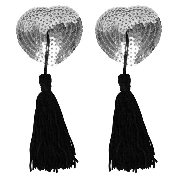 ピタッと貼るだけの簡単仕様♪バストトップ(乳首)に貼るだけで、手軽にオシャレが楽しめる下着感覚のニップルジュエリー「ニップルタッセル スパンコールハート 銀」。複数回使用できる強力粘着シールタイプのボディアクセ。きらきらと光るスパンコールで贅沢にデコレーションしたハート型ニップルと、ゆらゆら揺れるタッセルを組み合わせたゴージャスなデザインは、ショータイムやナイトパーティーにも最適です。