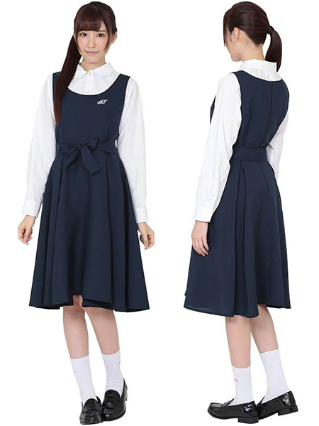 ちょっぴりレトロっぽさを感じさせる制服コス!ネイビーカラーのジャンパースカートとホワイトカラーの長袖ブラウスが清楚感漂うスクールコスチューム。リボンをウエスト部分で結べば可愛らしさもさらにアップします。スカート部分は幅が広めのプリーツが入っており、丈も長めなので着るだけでピュアな真面目女子を演出できます。