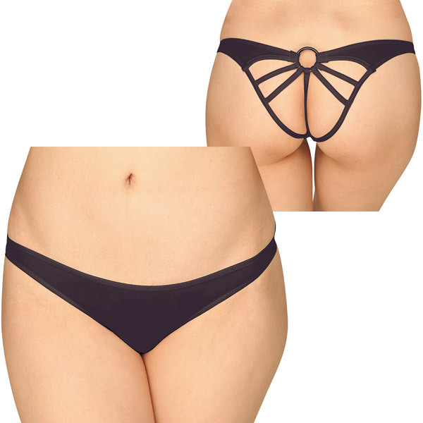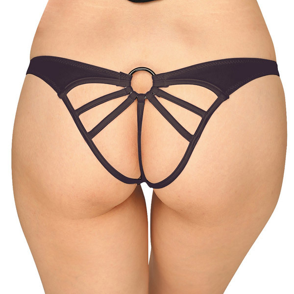 2wayストレッチ素材を使っているので上下左右どちらにも伸縮性を持ち、ピッタリとフィットしつつも窮屈さを感じさせない着心地バツグンのセクシーショーツとなっています。正面はごく普通のローライズ系ショーツですが、後ろは蝶が羽を広げたようなインパクトある露出したデザインのため、妖艶でエロスたっぷりに誘惑したいときや彼氏を悩殺したい夜にも最適。リングを起点とした肌の露出やラインの食い込みが、ブラックカラーと相まって女性ならではのエロさを最大限に引き出してくれますよ!