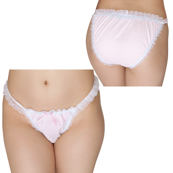 白レースコットンフルバック ピンク