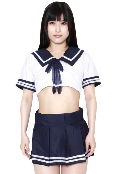 セーラー服の定番カラーといえば紺×白!マイクロ丈スカートやミニ丈トップスなど、露出度高めのエロさ感じるミニ丈セーラーコスプレが登場しました♪短めの衣装から見えるお腹とお尻がお色気たっぷり!着心地の良いストレッチトップス、ミニスカート、Tバックの3点セットです。