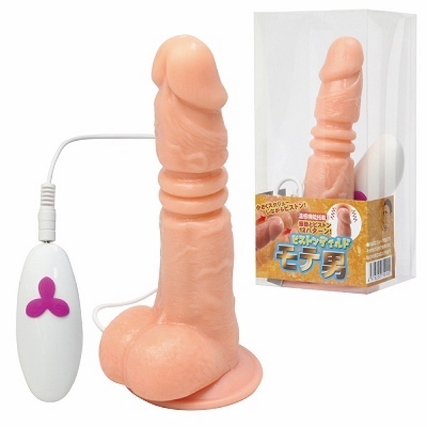 振動&ピストン。ピストン&ヒート機能を搭載したモテモテバイブ「モテ男」!亀頭部分が人肌に温まり、肉感素材と相まって本物以上の挿入感!更に先端の振動がGスポットを快感刺激♪ピストン時のジャバラ部分の擦れ具合も気持ちいい計算されたボディ●人肌に温まるヒート機能搭載●12パターンの振動+ピストン機能●便利なジャック式リモコン●専用USB充電コード付属
