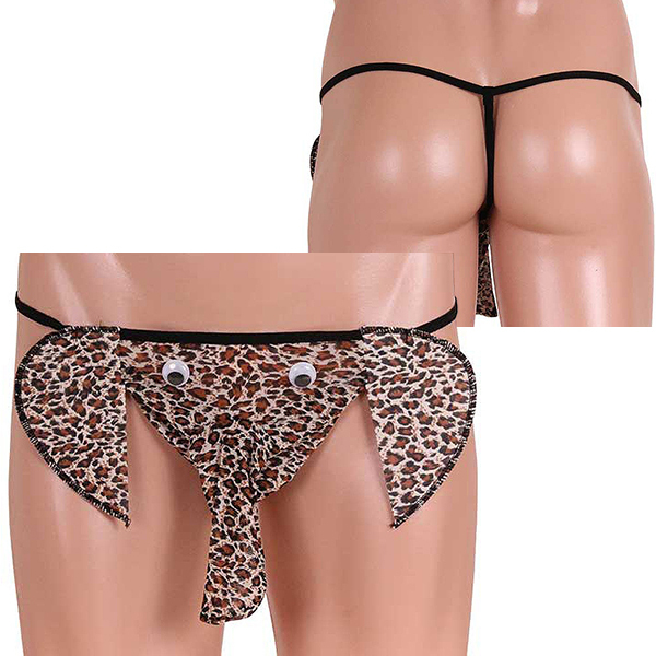 黒目がくるくる動く遊び心満載の男の象さんパンツ。透け感のあるパワーネットと光沢感のあるサテン生地のコラボで可愛いゾウ!バックスタイルはGストリングで超セクシー♪インパクト大のメンズパンツで主役級の存在感は間違いなし!お洒落なアニマル柄でナイトライフを楽しんじゃおう♪※こちらの商品は受注発注商品の為、ご注文から発送までに3、4営業日掛かる場合が御座います。