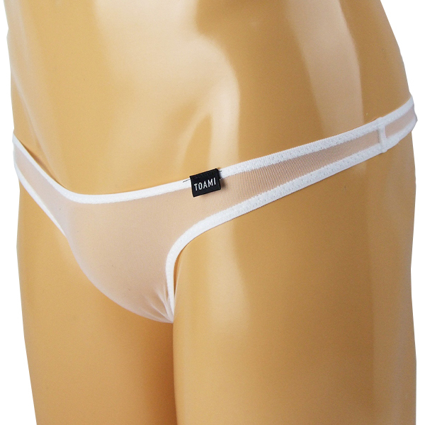 デザイン良し、機能性も抜群!通気性の良い透け透けTバック(白)。Tバックがお尻にジャストフィット!動きやすく穿き心地も良いですし、ローライズ仕様なのでズボンに響きにくいのもポイント。フロントの黒タグがお洒落な印象を与えます♪日本製