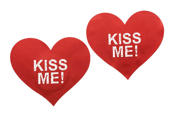 「KISS ME!」あなたの気持ちを赤いハートで伝えるニップレス。肌保護のため乳首に触れる裏面の中央部分には粘着しない素材を使用!2枚1セット※肌に合わない際はご使用をお控えください。