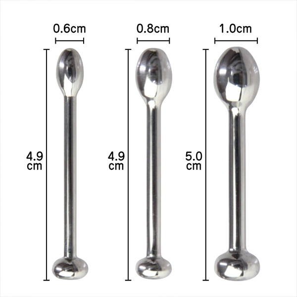 美しいメタルボディがまだ見ぬ快感を呼び起こす!個人に合わせたサイズで楽しめるストレートタイプのブジー3本セット。煮沸消毒可能な金属製