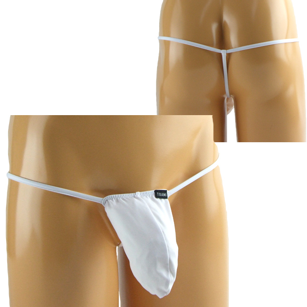 伸縮性が良く着け心地抜群の2wayストレッチを使用した前袋付きのメンズ用Gスト(白)。過激な見た目にドキドキせずにはいられない!男の魅力を最大限に引き立たせる大胆セクシーな日本製Gスト。