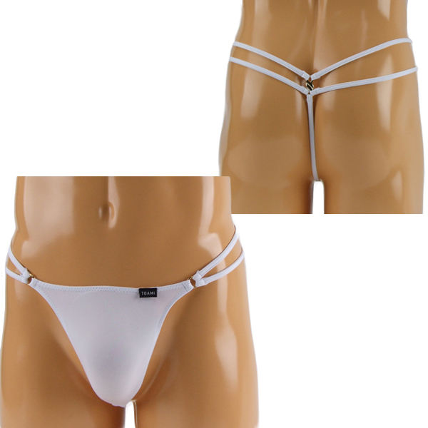 腰周りのダブルストリングデザインがお洒落な日本製のメンズ用Gスト(白)。上下左右に伸縮性のある2wayストレッチ生地が優しく包みこむ♪男らしくセクシーに演出する男性用Gストリング。