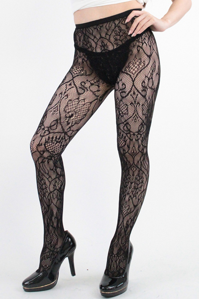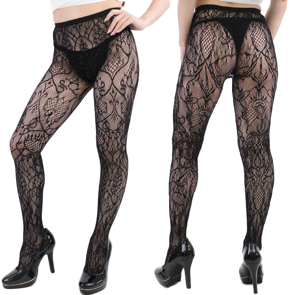 上品でクラシカルな雰囲気を生み出すアラベスク柄の網ストッキング(黒)。身に着けるだけで大人の色気が際立つ一足!パーティドレスや地味になりがちな秋冬コーデのおともに。日本製