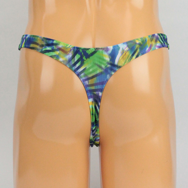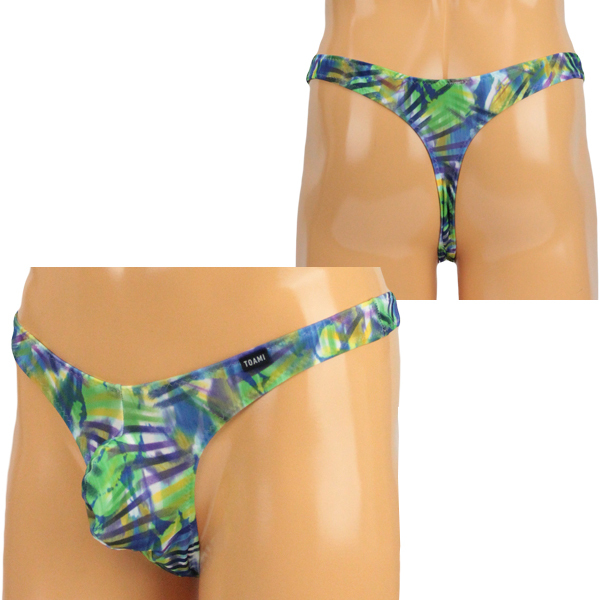 > メンズ ストレッチ幾何学プリント柄もっこりTバック グリーン