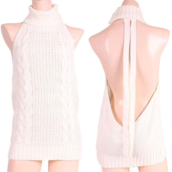 一年通して着こなせるホルターネック仕様の人気ニットセーター。お尻まで覆うロング丈に、サイドとバックを大きく開いたデザインが印象的!首の後ろでリボンを結び可愛くアピールすれば、どんな男性も魅了されること間違いなし♪爽やかなホワイトカラー※こちらの商品は受注発注商品の為、ご注文から発送までに3、4営業日掛かる場合が御座います。