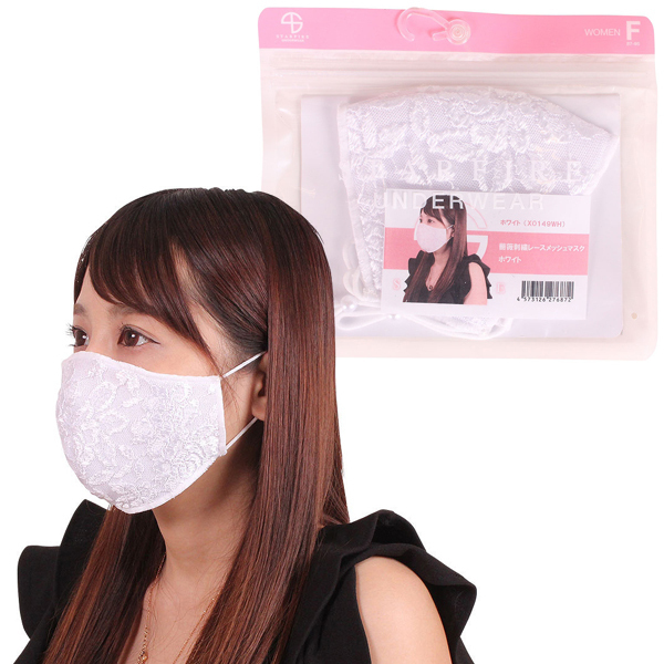 > 薔薇刺繍レースメッシュマスク ホワイト